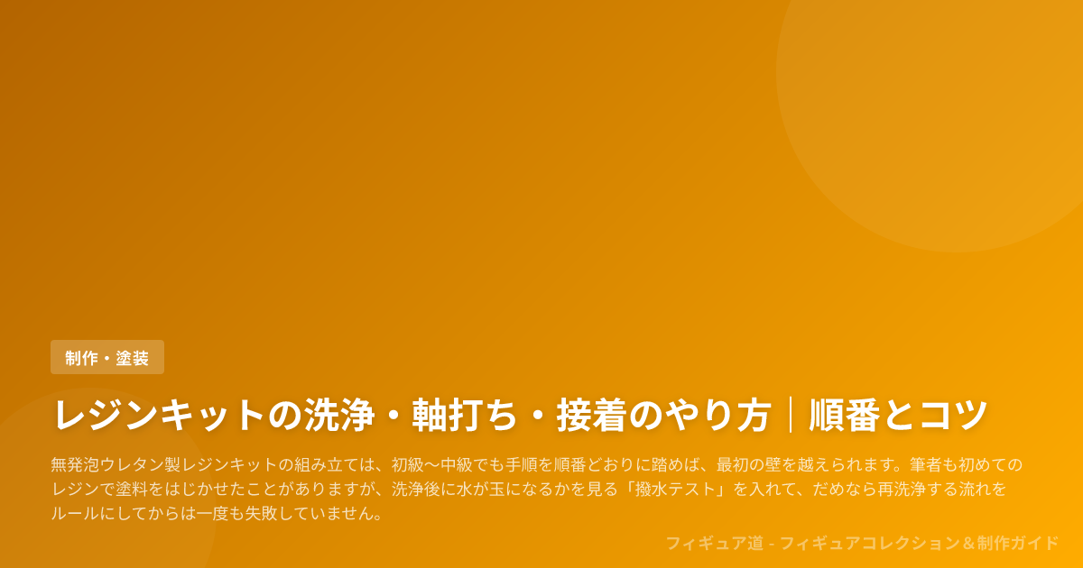 レジン特有の離型剤・油分・脱脂の考え方については、Atelier Ousaka のパーツチェックや Hobby JAPAN Web の連載(ノモ研)などを参考に、実作業に落とし込んで噛み砕いて解説します。