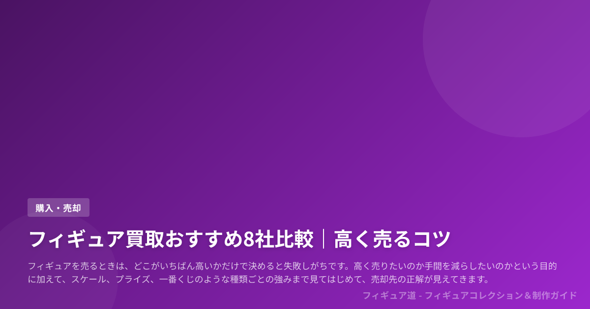 申込方式や条件で異なる) | 要確認(公式参照・条件あり) | 要確認(公式参照) | フィギュア全般、宅配まとめ売り向け | | | ホビーコレクト | 宅配・出張 | 要確認(公式参照) | 要確認(公式参照) | 要確認(公式参照。