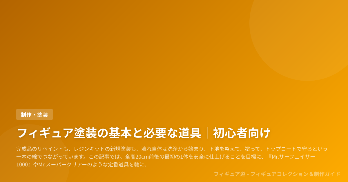 その転機も含めてHobby JAPAN Web フィギュア塗装How To()やYZPハウス ガレージキットの塗装方法()で整理されている定石に沿って、最短で失敗を減らす道筋をお伝えします。