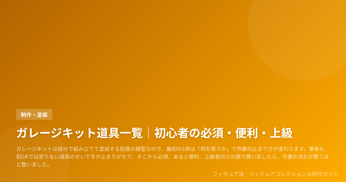 この記事は、フィギュア・模型用レジンキットをこれから始める人に向けて、組み立て・表面処理・塗装・安全の4工程を3段階で整理し、最初に揃えるべき道具を過不足なく見極めるためのガイドです。
