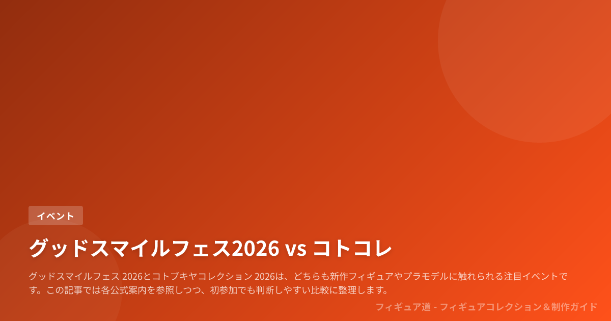 結論から言うと、グッドスマイルフェス 2026は幅広いブランドの新作を一気に見比べる展示イベントで、コトブキヤコレクション 2026はコトブキヤの新作を軸に、試遊会やトークまで含めて没入する発表イベントです。