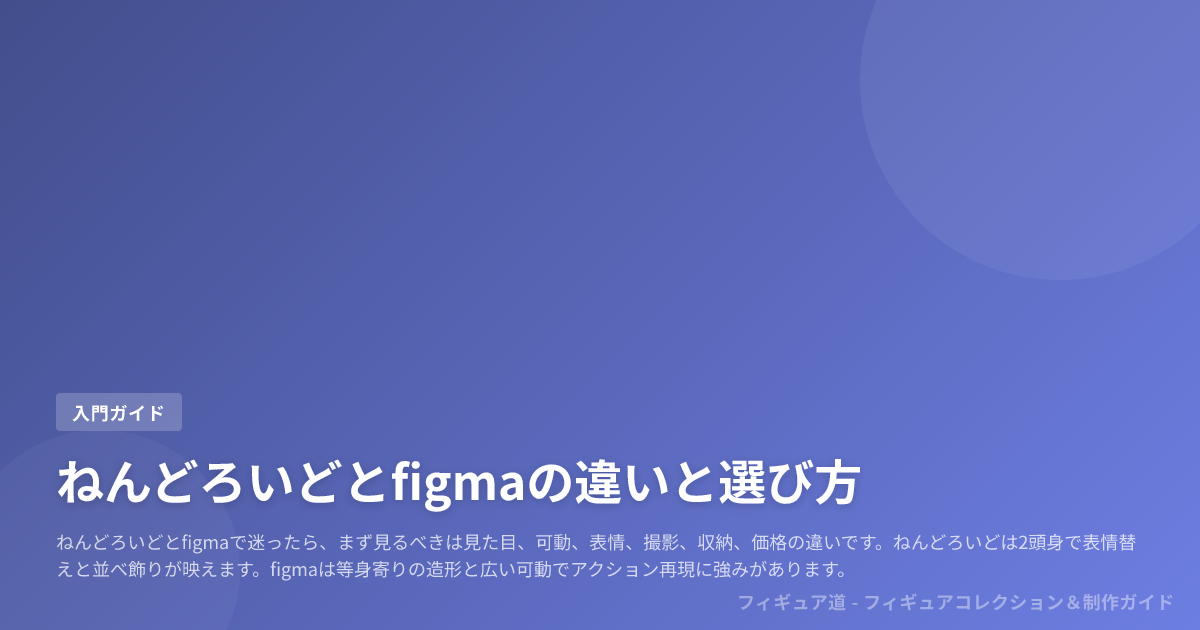 ねんどろいどとfigmaで迷ったら、まず見るべきは見た目、可動、表情、撮影、収納、価格の違いです。