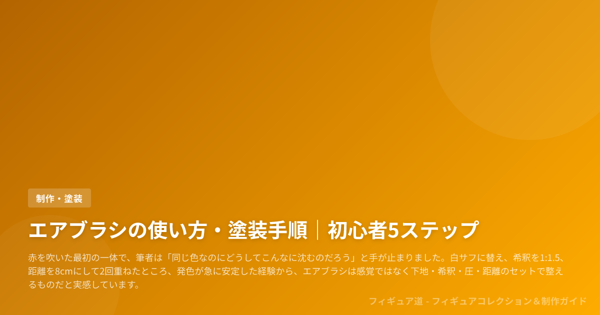 [!TIP] フィギュアや模型の文脈では、筆塗りは「点や線を置く」、缶スプレーは「広い面をまとめて塗る」、エアブラシは「薄い層を狙って重ねる」と整理すると、使い分けで迷いません。