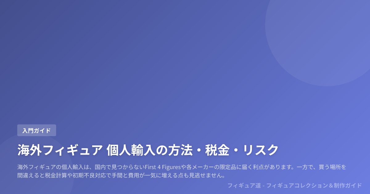 この記事では、はじめて海外フィギュアを買う人に向けて、4つの購入経路の選び分け、課税価格1万円以下の免税や20万円以下の簡易税率、輸入消費税10%の考え方を、60%換算の計算例つきで整理します。